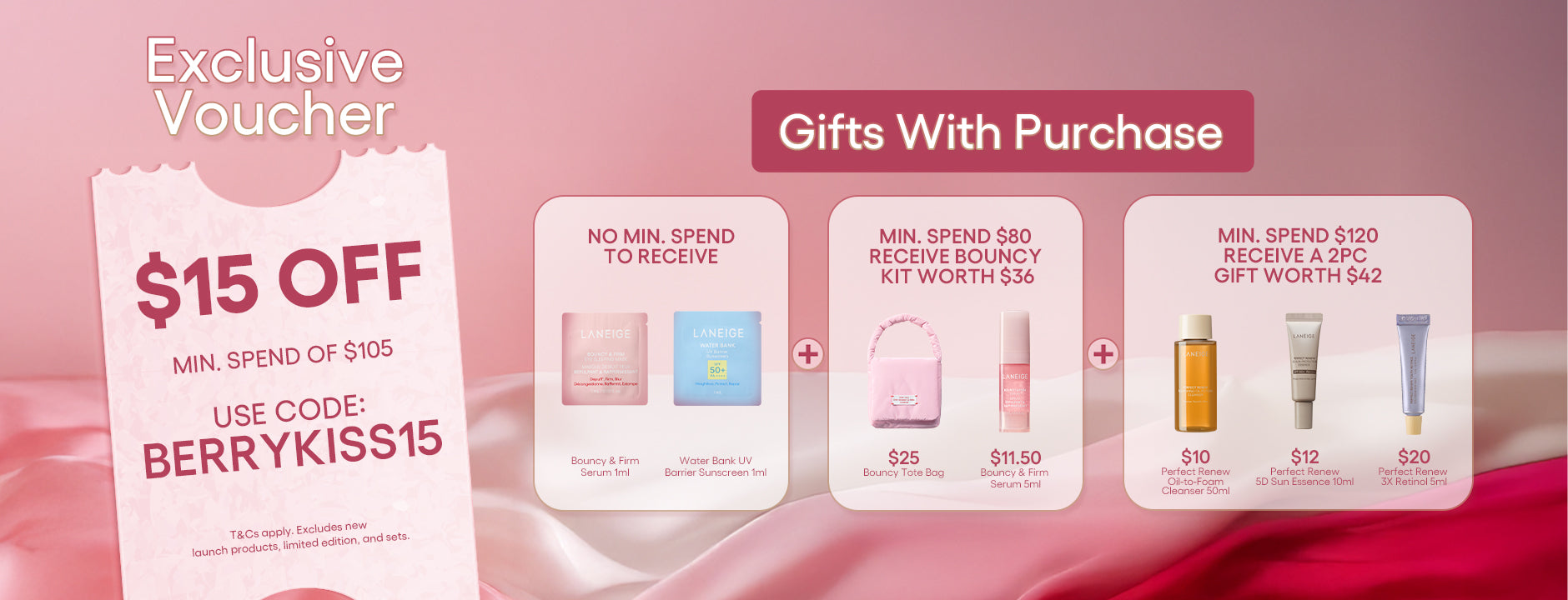 Set includes: 1 x LANEIGE Bouncy & Firm Sleeping Mask 60ml 1 x LANEIGE RadianC Sun Cream 50ml